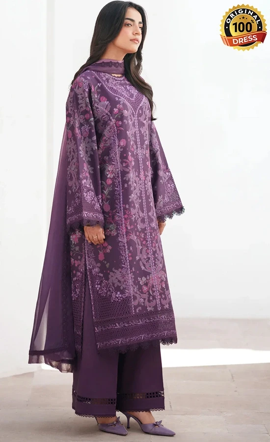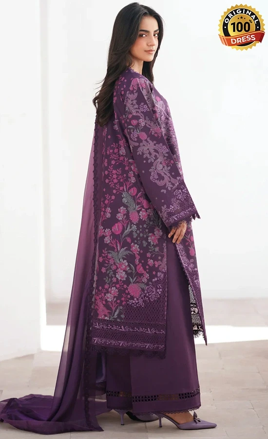 - Digital printed embroidered sleeves 2 pcs purple printed lawn