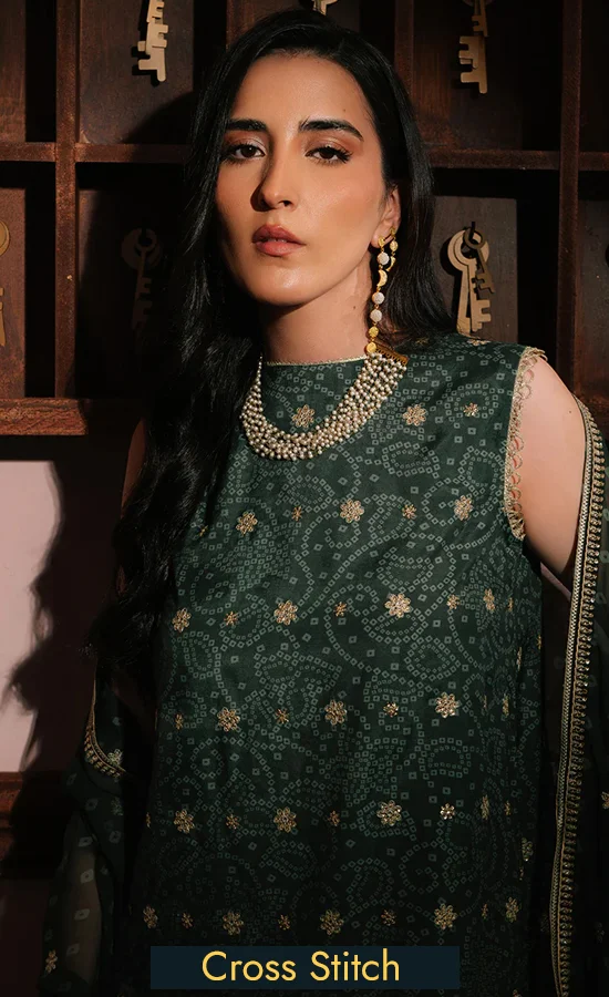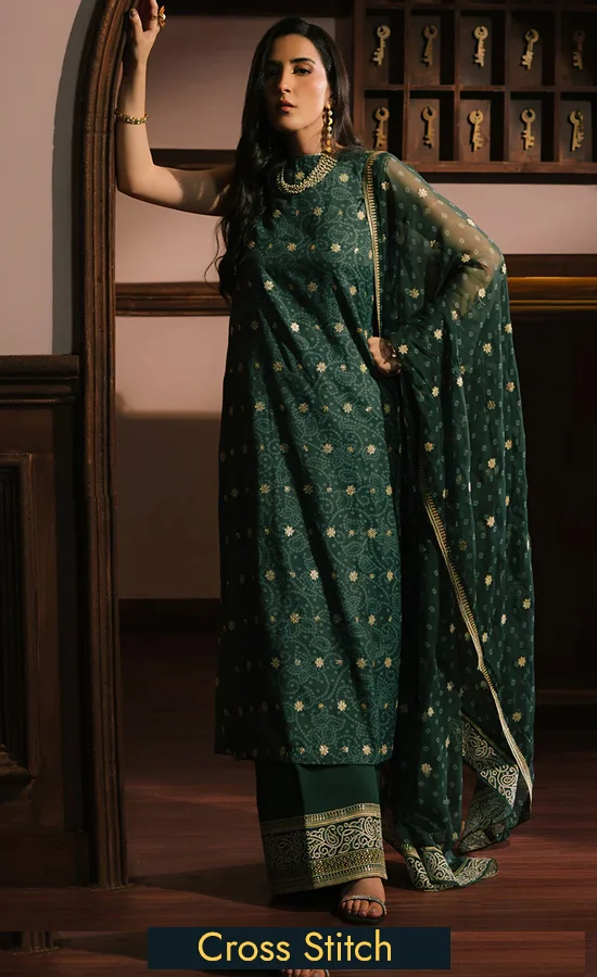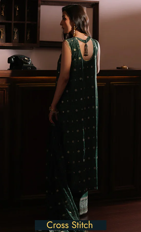 Buy Cross Stitch PK Embroidered Silk Emerald Majesty Dress Now!