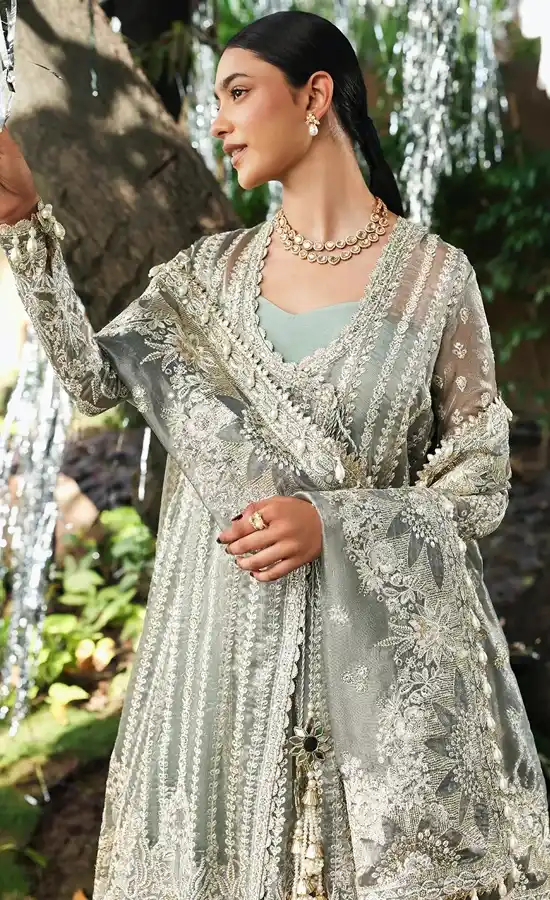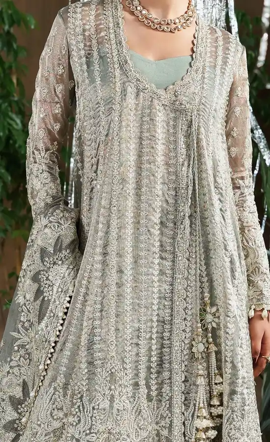 - Dusty Grey Viscose Zari Embroidered Back Panels Up 1.97 M