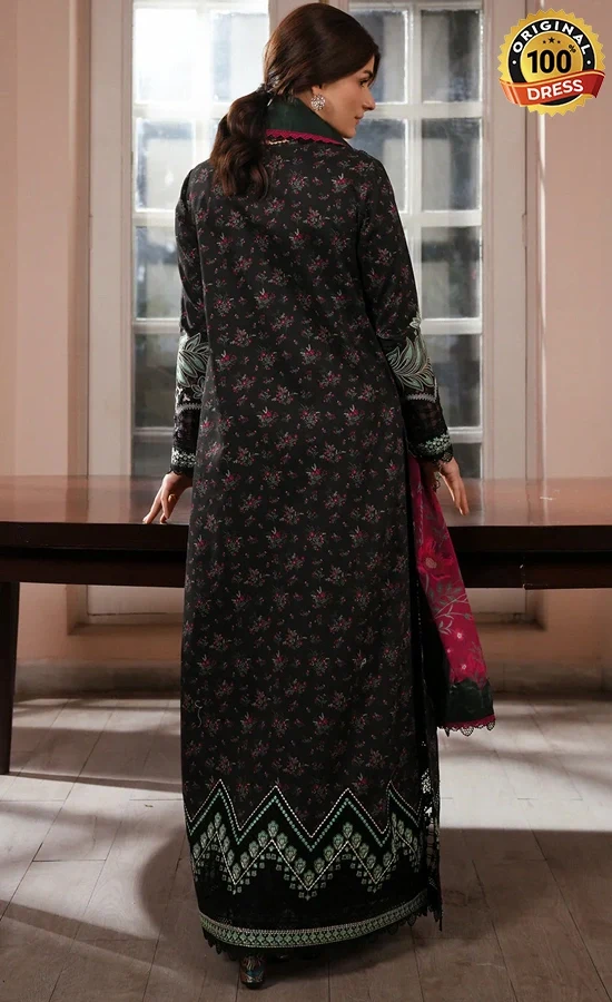 • Printed lawn black digital printed embroidered sleeves 2 pcs