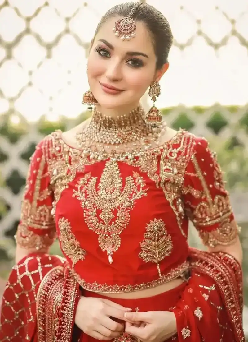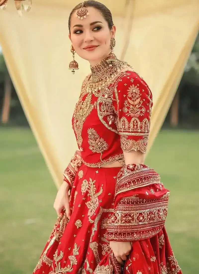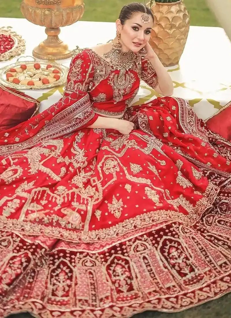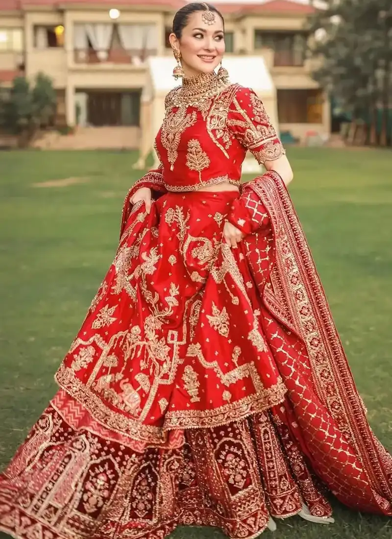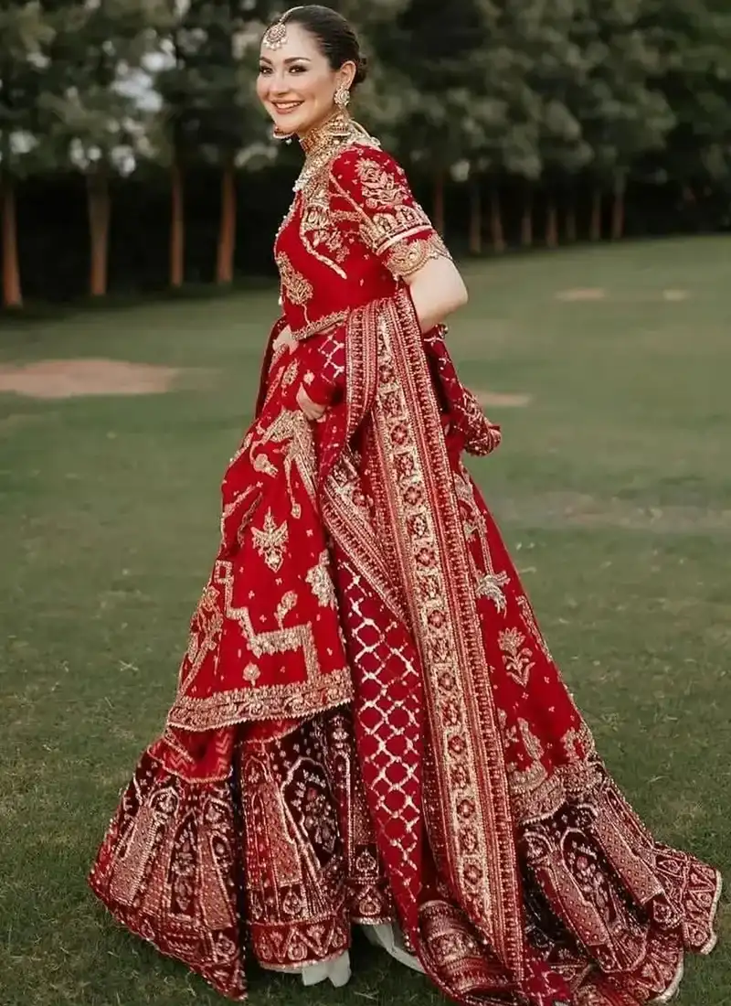 Features of Hania Amir Red Gold Bridal Lehenga: