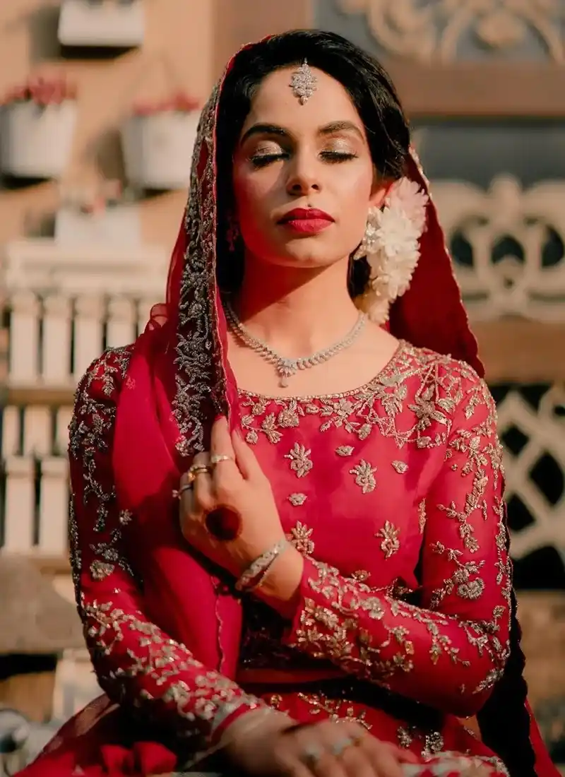 - Elegant and Romantic: Pink is known as a feminine and romantic color that evokes a feeling of softness and elegance. The deep shade of pink will add a sophisticated touch to your bridal outfit.