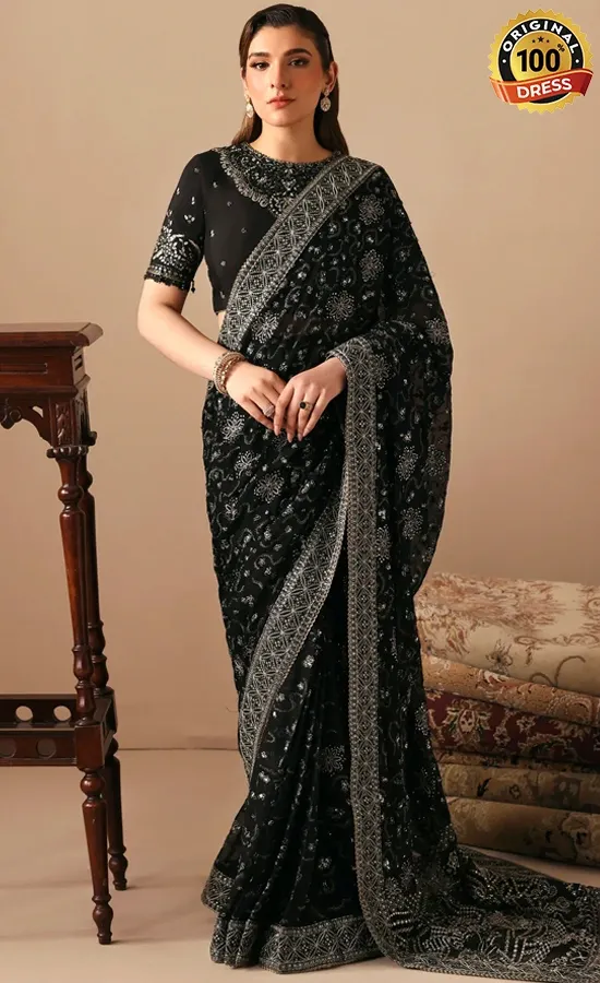 • Embroidered Chiffon Saree Fall – 2